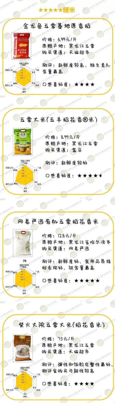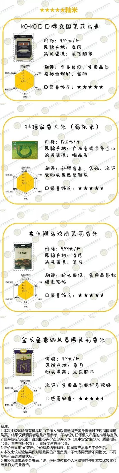 晶報2019年10月15日訊 如今市面上的大米產品琳瑯滿目,如何挑選一款既安全又富含營養,且符合自己口味的大米,成為大家日常困惑的問題。為此,深圳市消費者委員會委托深圳市品質消費研究院開展大米比較試驗,通過對20款大米科學的客觀檢測和感官測評,最終評選出了8款五星大米,并把大米的價值所在告訴消費者。