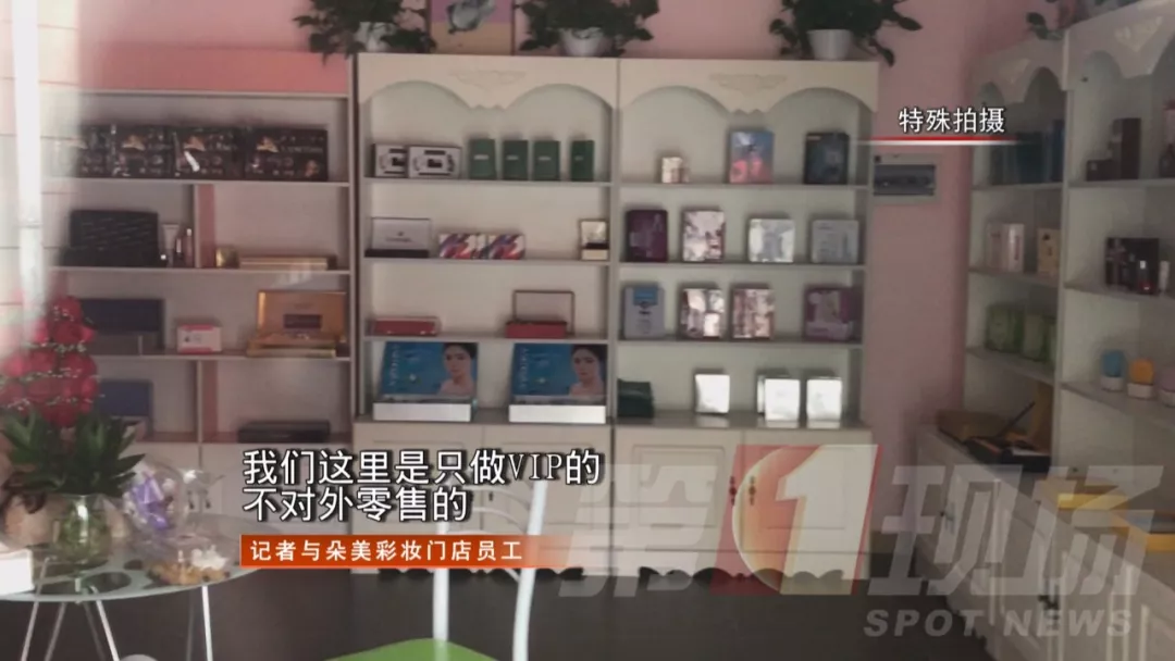 更讓記者覺得奇怪的是,在送走男網友后,女子提出來的化妝品,轉手就會送到后面跟隨的男同伙手中,接收完化妝品的男同伙,也一直在門店附近轉悠。記者隨后以要買化妝品送人為由,進入到這家朵美彩妝店,不料更奇怪的一幕發生了,對方不但不賣,還直接下了逐客令。