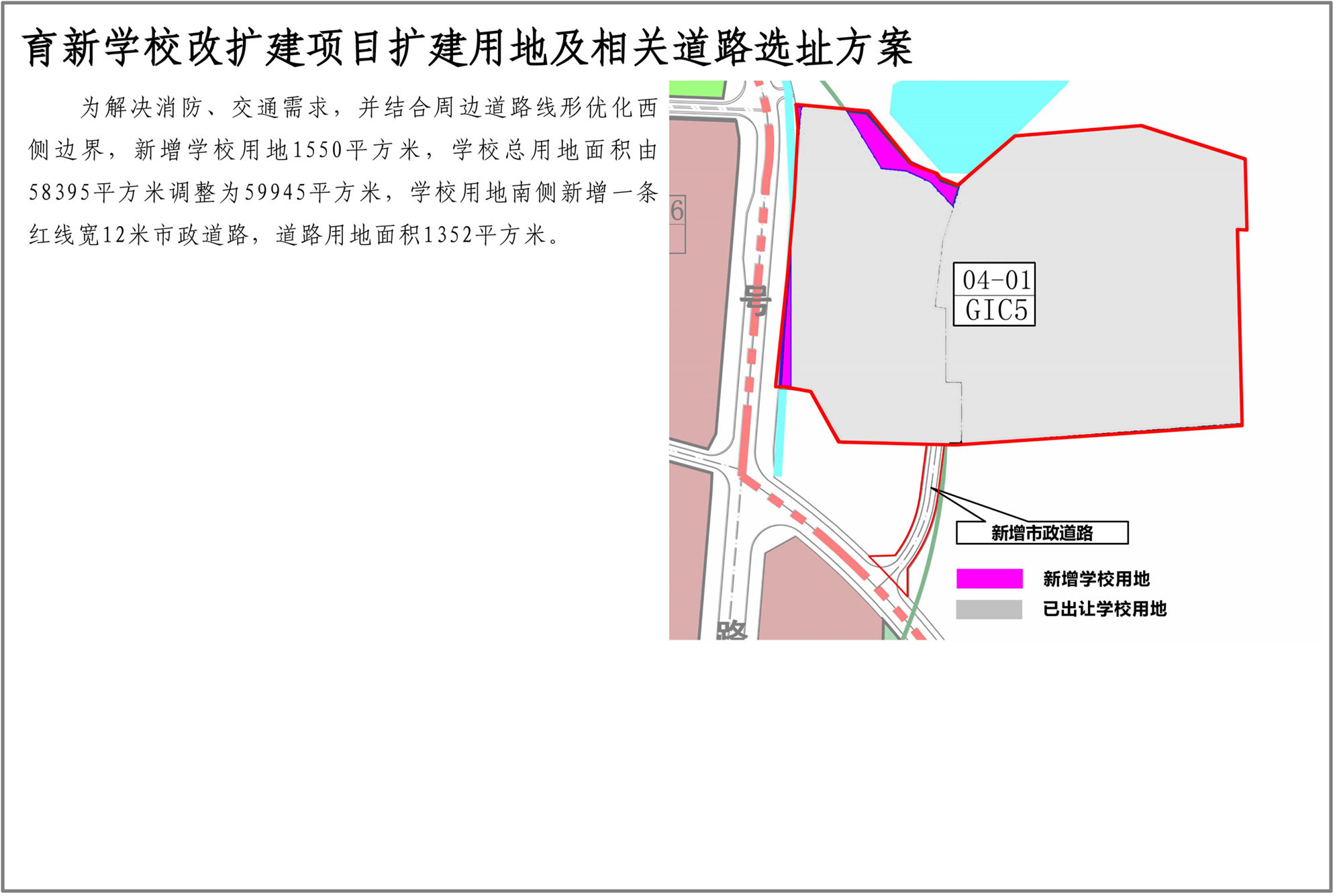 深圳市育新學(xué)校位于光明街道碧眼社區(qū),規(guī)劃觀光路(現(xiàn)狀已建)和二十三號(hào)路(現(xiàn)狀已建)交叉口西北側(cè)。為消除校園消防、交通出行安全隱患,滿足規(guī)范需求,新增學(xué)校用地1550平方米,以解決消防、交通需求,并結(jié)合周邊道路線形優(yōu)化西側(cè)邊界,學(xué)??傆玫孛娣e由58395平方米調(diào)整為59945平方米,學(xué)校用地南側(cè)新增一條紅線寬12米市政道路,道路用地面積1352平方米。