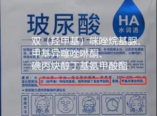 標簽標識是化妝品的“簡歷”,根據國家相關法規的要求,標簽上有很多強制要求標識的信息,除了大家熟悉的產品名稱、生產企業、保質期、凈含量外,還有成分列表等。因此可通過查看成分列表來判斷產品功效,比如透明質酸鈉是保濕的,煙酰胺是美白的,洋甘菊是舒緩的等。此外,還可識別出易引起皮膚過敏的成分,比如甲基異噻唑啉酮、甲醛及甲醛緩釋體等。較為常見的甲醛緩釋體防腐劑有咪唑烷基脲、雙(羥甲基)咪唑烷基脲、DMDM乙內酰脲等。敏感肌膚或面膜使用頻次較高時,建議通過查看產品成分列表避開含有以上易致敏成分的面膜產品。