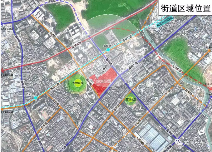 項目位于龍崗區坪地街道,東臨現狀富坪路,南臨現狀龍崗大道,西臨現狀埔仔路,北臨規劃興坪路。