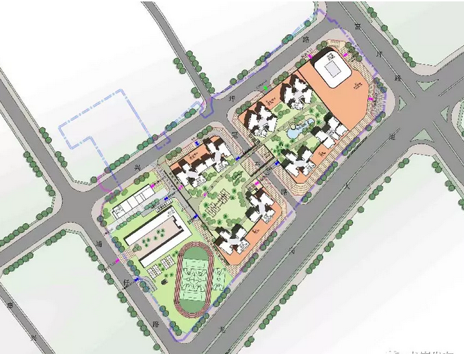 其中住宅210360平方米(含公共租賃住房26537平方米),商業、辦公及旅館業建筑67000平方米(含母嬰室130平方米),公共配套設施11880平方米(含9班幼兒園2400平方米、占地2950平方米,公交首末站2500平方米,社區健康服務中心1000平方米,社區老年人日間照料中心750平方米,文化活動室1000平方米,社區管理用房300平方米,社區警務室50平方米,便民服務站400平方米,郵政所100平方米,小型垃圾轉運站150平方米,再生資源回收站60平方米,公共廁所60平方米,環衛工人作息房10平方米,公共充電站700平方米,黨群服務中心650平方米,社區級公共配套用房1750平方米),另配建社區體育活動場地占地面積3000平方米,移交27班九年一貫制學校用地面積13056平方米。
