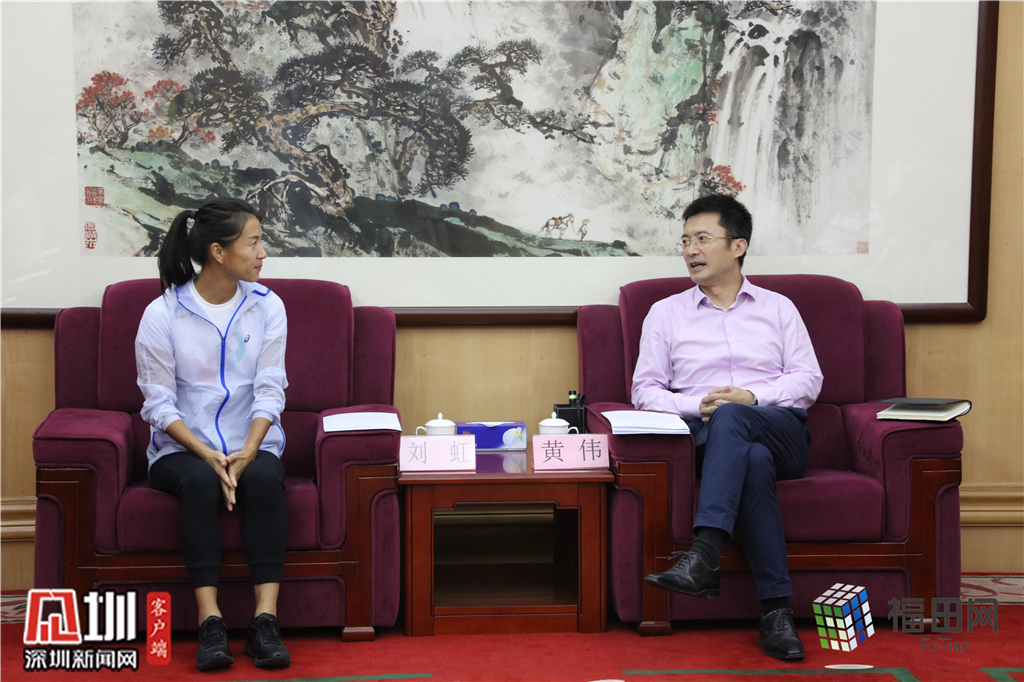 黃偉代表區委區政府給劉虹頒發了50萬元獎勵金,以表彰她頑強拼搏的精神和對福田體育事業做出的貢獻。