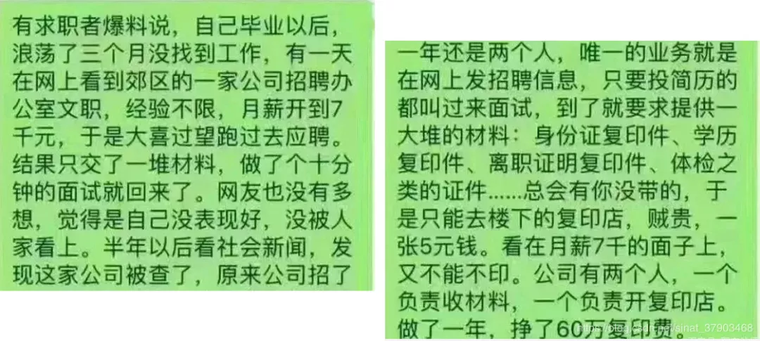 見圳客戶端·深圳新聞網2019年11月7日訊 有個帖子,最近廣為流傳,說是有騙子掛羊頭賣狗肉,打著公司招聘的幌子賺應聘者的復印費,復印一張5塊錢,竟年入60萬!