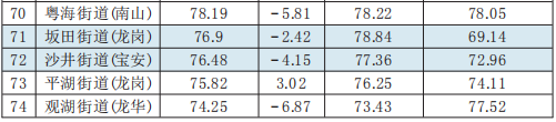 10月份,各區排名榜上,鹽田區“勝不驕”,繼續以優異的成績保持第1,拿下“五連冠”,且在今年前10個月的測評中,鹽田區已經8次取得第一名。羅湖區則“敗不餒”,在去年連續排名靠后甚至墊底的情況下,毫不氣餒,正視問題,補齊短板,理順機制,今年指數得分和排名穩步提升,10月份更奪得榜眼,現場考察指數全市第1,轄區3個街道進入全市排名前6,5個進入前15。而龍華區和龍崗區則連續兩月排在倒數后三,龍崗區平湖街道連續3個月排在后5,應對照測評情況找問題,出實招,加大整治提升工作力度。