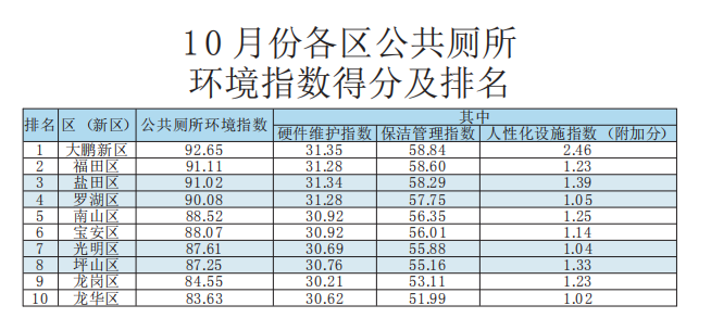 原標題:10月份深圳市環境衛生指數測評成績發布