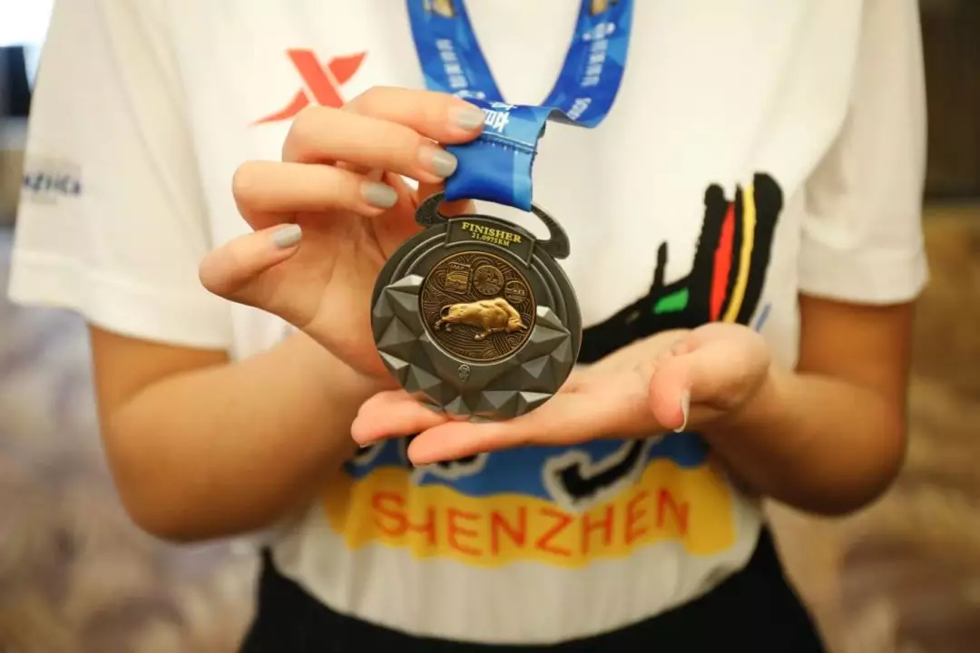 本次,2019深圳國際馬拉松完賽獎牌一直以來是跑者關(guān)注的焦點,完賽獎牌以龍崗大運體育中心建筑為主體,正面集中展示平安大廈、地王大廈、市民廣場等深圳市地標建筑,背面是由全國著名的藝術(shù)家潘鶴雕刻而成的拓荒牛雕像。拓荒牛粗獷雄偉,重心向前,堅韌不拔,是剛毅和力量的代表,象征深圳開拓進取的精神。