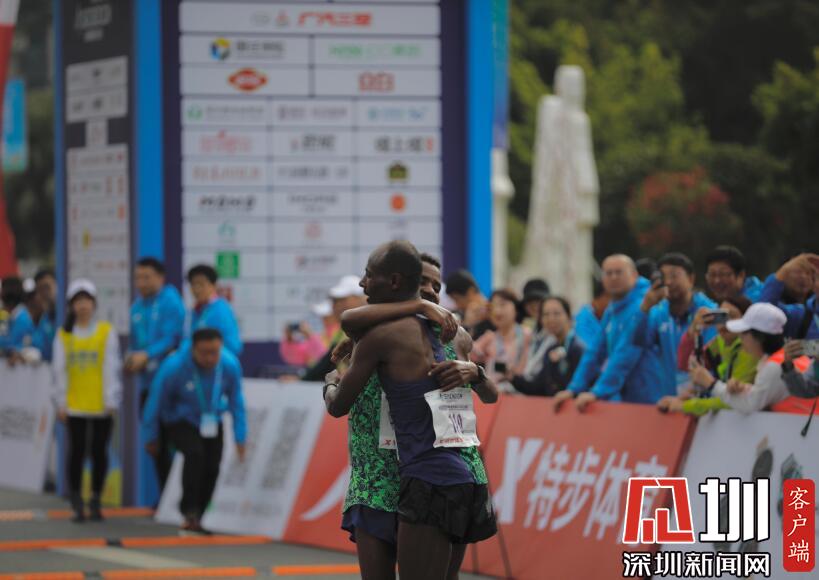 全程男子冠軍Tadese Tola Woldegeberel和第二名獲獎者擁抱。