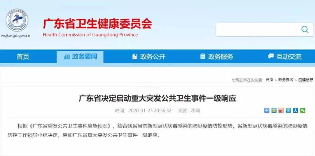 廣東啟動(dòng)重大公共衛(wèi)生事件一級響應(yīng)