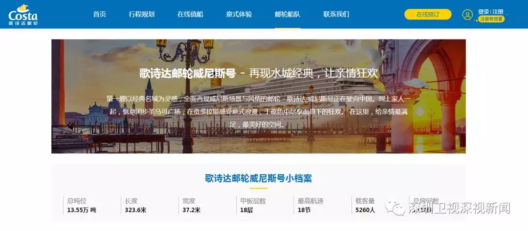 歌詩達郵輪中國官網顯示,威尼斯號郵輪載客量5260人,共2116個房間。