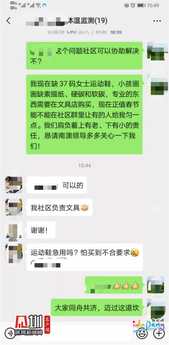 身處隔離區,日常生活難免受到影響,醫生便通過微信群及時了解他們的生活所需,并向社區求助,盡可能地提高他們在隔離區的生活質量。