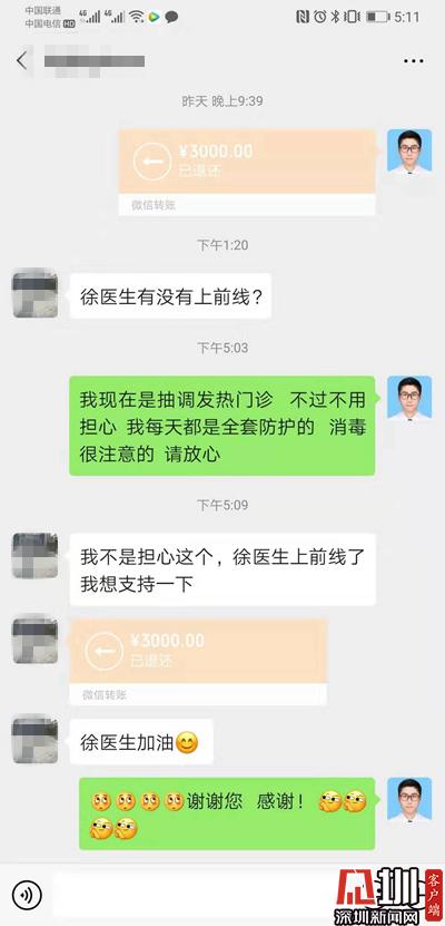 2日上午,寶安中醫院(集團)隔離病房工作的徐醫生,遇到了令他十分感動的事。他通過微信向房東交房租,房東問他是不是在防控前線工作,徐醫生以為房東怕傳染而嫌棄他,連忙向房東解釋自己做好了防護消毒,不用擔心,沒想到房東直接把房租退了回去,表示要支持徐醫生在前線工作,真是暖心啊!