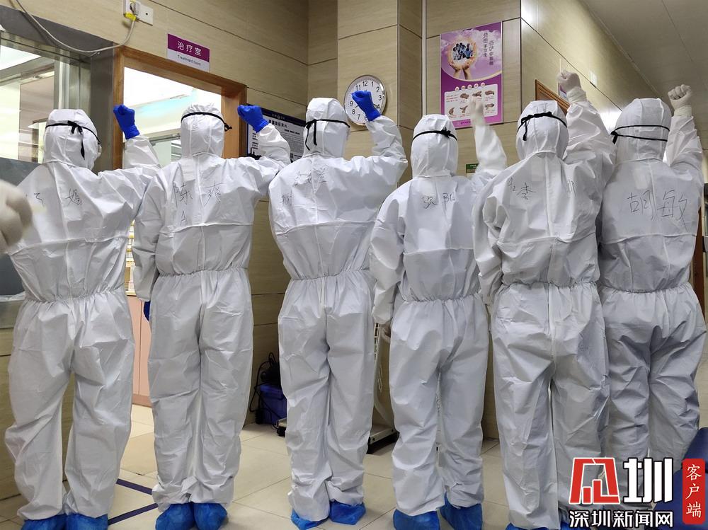 穿上防護服的他們,我們只能通過背后的手寫姓名認識他們。
