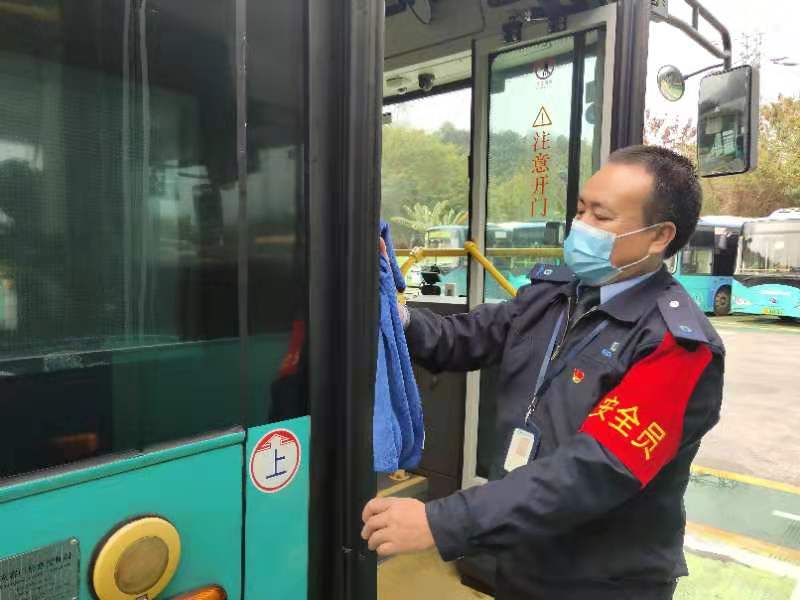 雖然每臺公交車出車前都要進行清潔和消毒,但邱華還是有些不放心,他先把車上乘客容易觸碰到的扶手,用噴酒過消毒液的抹布再次抹了一遍,一切準備妥當后,才精神抖擻坐上自己的駕駛位。