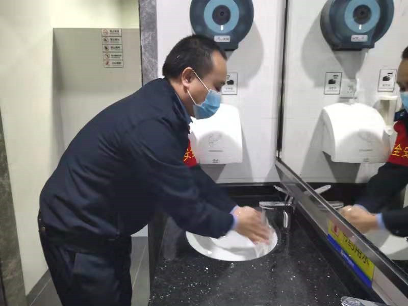 由于現在是肺炎疫情嚴重防控期間,按照車隊要求,邱華出車前先去洗手間把手洗干凈,然后接受問詢告知、酒精測試、測量體溫、配戴口罩等。