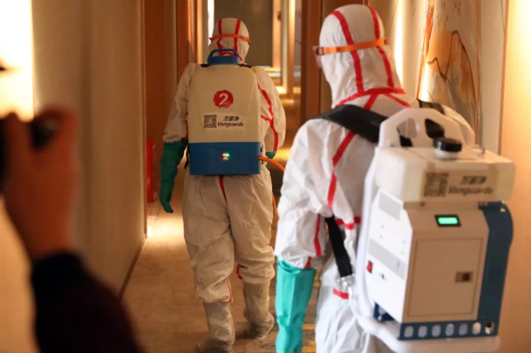 ▲疾控人員對病人逗留過的場所進行終末消毒