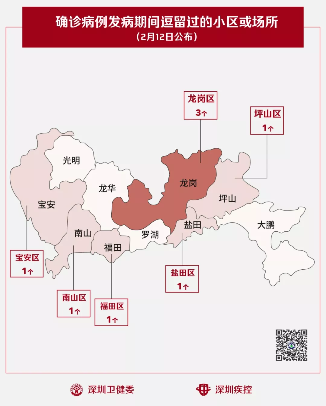 經過疾控專業人員的流行病學調查確認,2月11日,深圳新公布8個小區(場所),有新確診的病人曾在發病期間逗留。