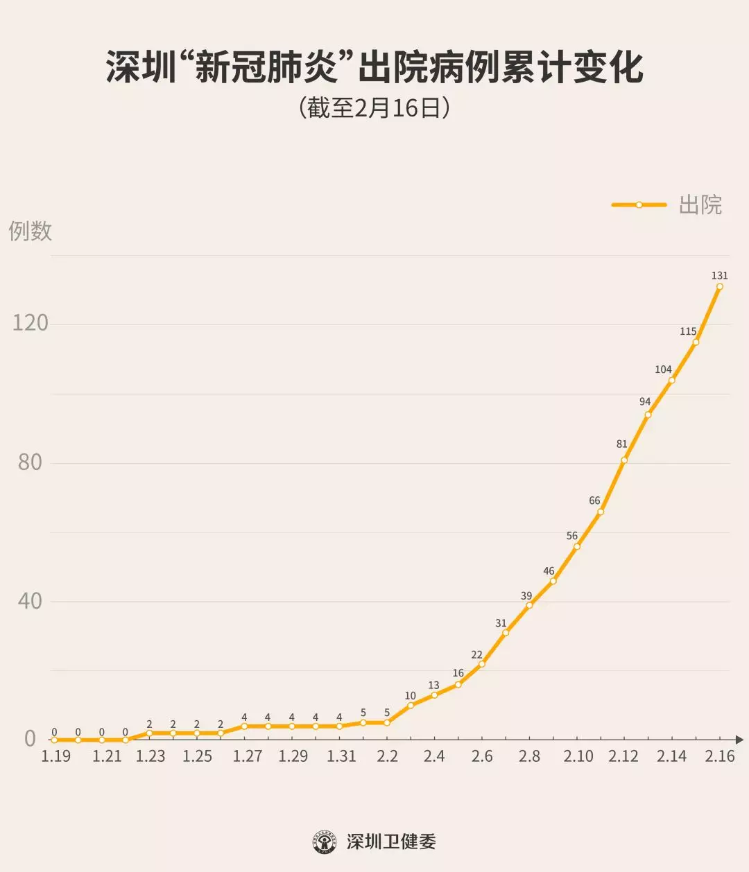 2月16日下午,經(jīng)專家組會(huì)診,深圳再有16名新型冠狀病毒肺炎確診患者出院,累計(jì)達(dá)131人,連續(xù)14天有人出院。