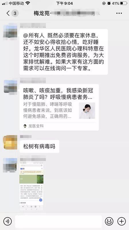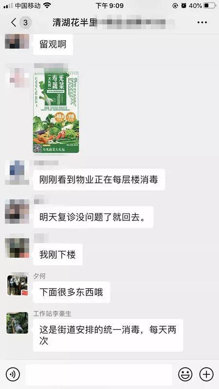 龍華街道協調物業管理處每天為小區公共區域消毒兩次,提供安全居住環境;定期定時在群內發布科學防控溫馨提示,普及家庭安全消毒措施,提高科學防控意識,引導支持配合防控工作。