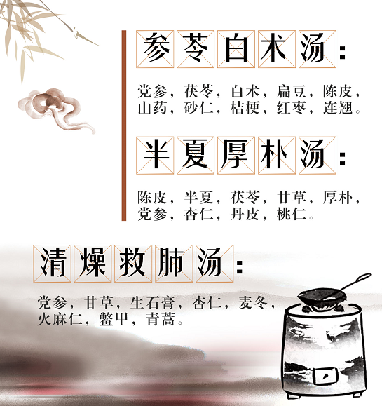 皮醫生說,這三個方劑,分別針對病情發展的三個階段,可以根據病情的變化進行轉換。令人欣慰的是,在整個醫療團隊的共同努力下,療效頗為顯著。剛開始喝“清躁救肺湯”的患者有30多人。里面有幾個連續多日發熱的病人,喝了后第二天就退燒了,沒那么煩躁了,原來很臟的舌苔也變干凈了。這群人喝了兩方“清燥救肺湯”,差不多一周后,病情就明顯好轉,就都改成喝“半夏厚樸湯”。而原先喝“半夏厚樸湯”的病人,癥狀減輕甚至消失,藥方變成“參苓白術散”。目前在喝“半夏厚樸湯”和“參苓白術散”差不多各一半。
