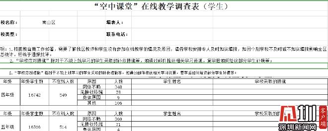 據(jù)悉,南山區(qū)教科院向全南山區(qū)學(xué)校下發(fā)了《“空中課堂”在線教學(xué)調(diào)查表》,要求學(xué)校對(duì)每一個(gè)學(xué)生的情況進(jìn)行調(diào)研摸排,做好“一人一策”托底方案。學(xué)校盡量幫助解決網(wǎng)絡(luò)不暢或缺乏終端的問題;如果確實(shí)解決不了,要改用學(xué)習(xí)資源推送,或者復(fù)學(xué)后利用周末、晚上給這些孩子免費(fèi)補(bǔ)課,趕上進(jìn)度。同時(shí),對(duì)這部分孩子及家長(zhǎng)做好解釋工作,并進(jìn)行心理方面的疏導(dǎo)。