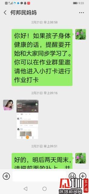 星河學(xué)校作為一個(gè)農(nóng)民工子弟占99%的公益民辦學(xué)校,1600多個(gè)學(xué)生和大部分老師在全國(guó)各地。學(xué)校克服困難,分兩批將學(xué)校19臺(tái)電腦寄到部分老師的老家,保證在線教學(xué)順利進(jìn)行。身在湖南的馮讓老師既是五年級(jí)1班班主任,也是小學(xué)語文教研組組長(zhǎng),收到學(xué)校寄送的電腦后立刻進(jìn)行直播。她班上有一名父母在深圳、留守在爺爺奶奶身邊的學(xué)生,因地處偏僻沒有網(wǎng)絡(luò)、父母不在身邊有些情緒,無心學(xué)習(xí)。了解情況后馮老師不厭其煩給學(xué)生打電話,和家長(zhǎng)溝通,終于在2月20日收到了孩子的作業(yè)打卡。經(jīng)過馮老師持續(xù)耐心的努力,目前孩子一直克服困難堅(jiān)持學(xué)習(xí)。