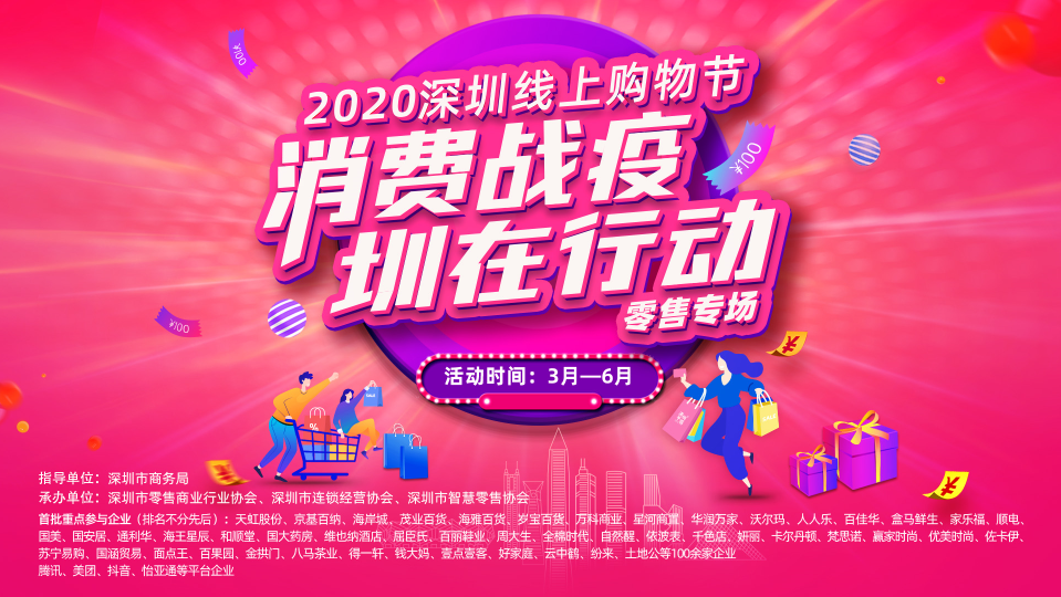 經過前期籌備,目前已有騰訊、京東、天貓、淘寶、有贊、餓了么、美團、蘇寧易購等大型電商平臺制定了本次活動的專項方案,各大平臺將通過開設深圳購物專區、免費配套平臺流量、全部減免活動費用、開通入駐綠色通道、開展直播指導培訓等方式,為我市線下零售企業賦能,在非常時期切實拓寬企業消費渠道,助力實體零售企業,擴大實體消費。目前,首批已覆蓋黃金珠寶、服裝服飾、消費電子、家裝家具、餐飲零售、海鮮美食等多個領域,有20多家協會和300多家企業踴躍響應參與,相關活動將在3月至6月期間在各大電商平臺陸續推出大力度的優惠讓利活動。