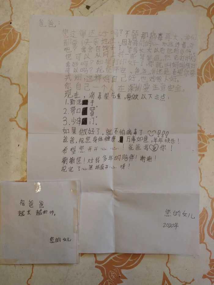 "爸爸:您過得還好嗎?不管那病毒再大,我們都要快樂地過,因為我們心連在一起……"日前,白云飛收到一封9歲女兒白家茵在高州老家給他郵寄的信件。