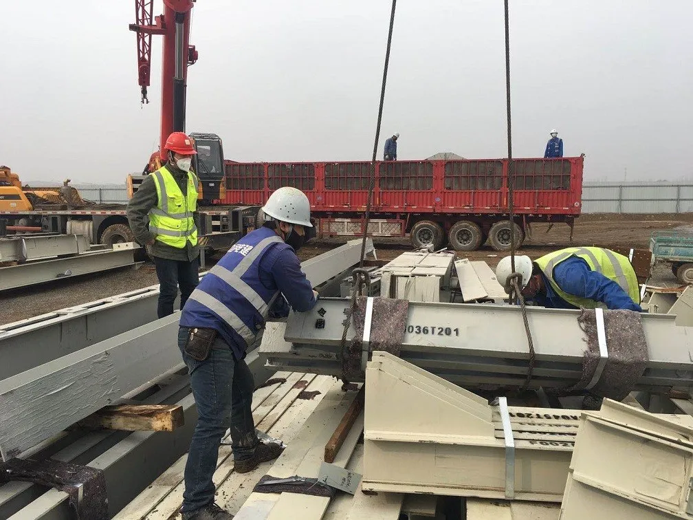 任丘能源生態園復工后首車鋼結構到現場,相關人員正在有序清點、卸車、堆放,為下一步安裝工程夯實基礎。