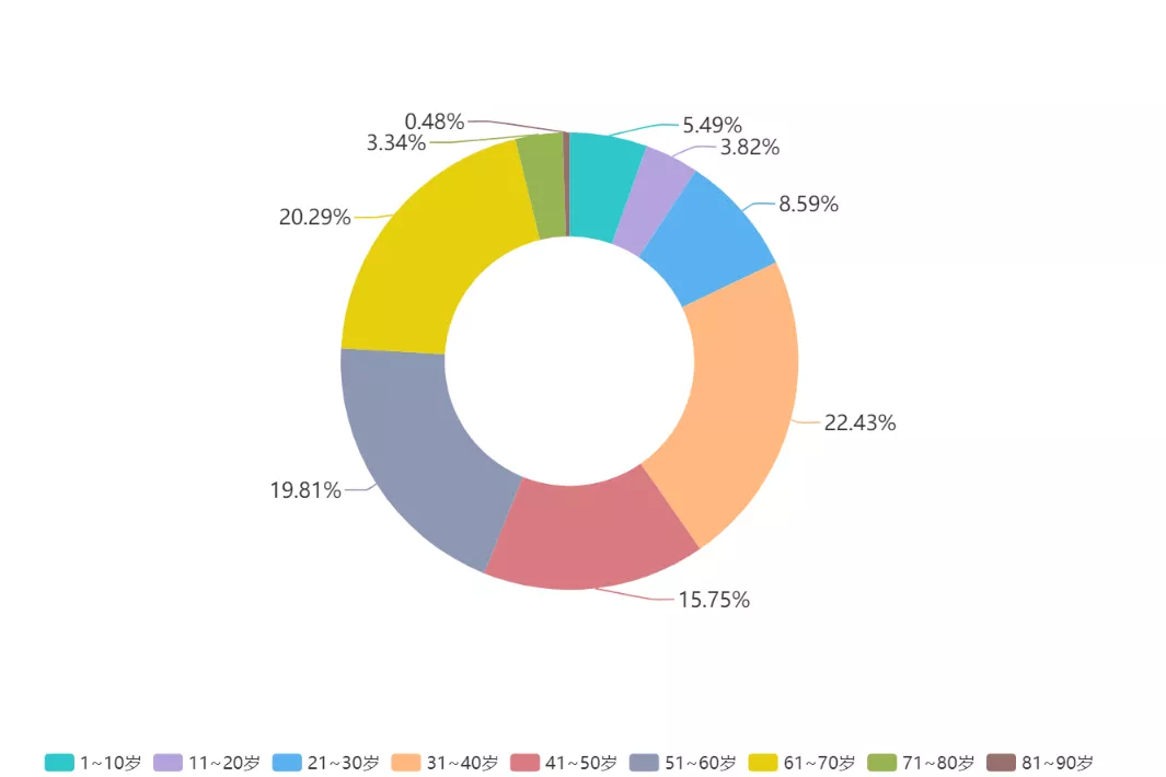 ▲新冠肺炎患者以中老年人為主,年齡在50歲以上的患者占到了總數的43.92%。但也應注意到,10歲以下的兒童確診人數達23人,青少年同樣存在感染風險。