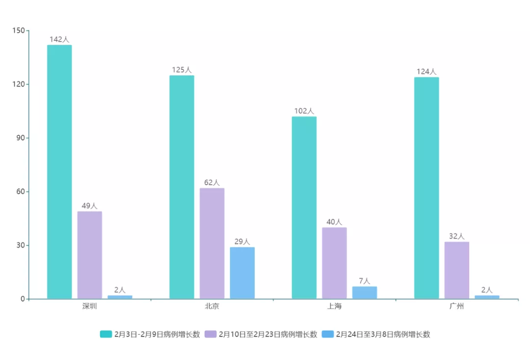 圖25北上廣深2月3日至3月8日新增確診病例數對比圖