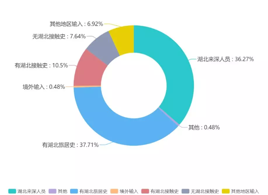 ▲所有輸入型病例中,近六成與湖北武漢有關聯,湖北省其他城市也為重點來源地區。可見,對湖北來深人員、有湖北旅居史人員的管控工作是防疫工作的重要一環。