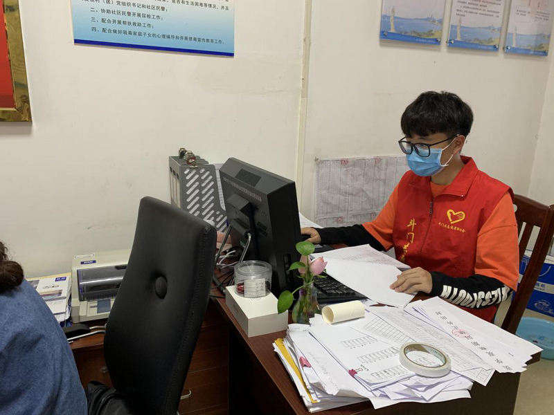 深圳信息學(xué)院19級(jí)劉泓濤在社區(qū)參加志愿服務(wù)。