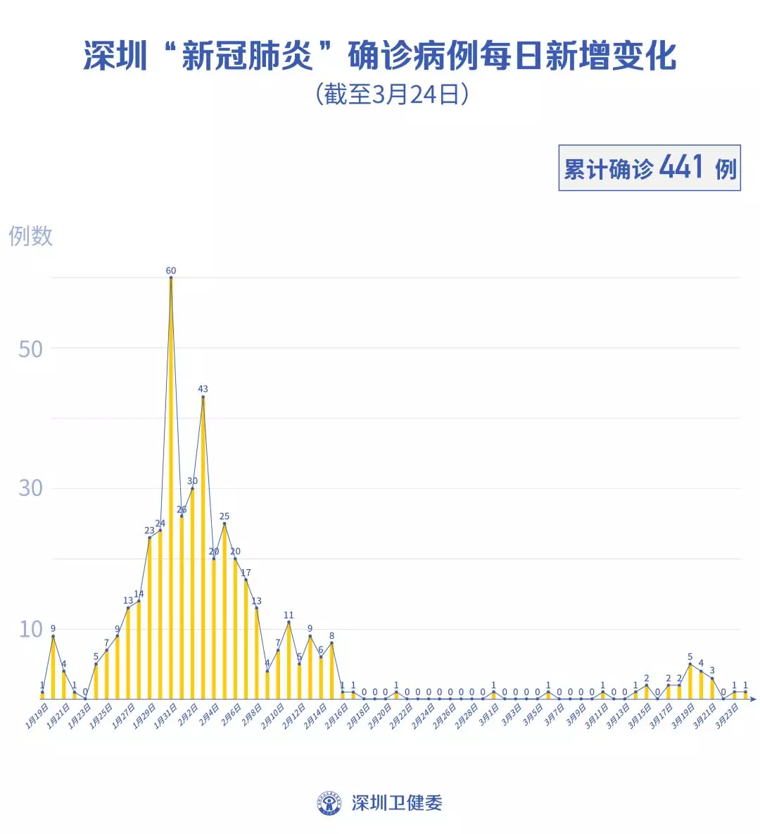 3月24日,深圳確診1例境外輸入“新冠肺炎”新病例,累計達24例。 病例24 男,31歲,巴西籍,在深圳工作,由英國返回。3月21日從英國倫敦乘坐SQ305航班飛往新加坡,22日從新加坡乘坐CZ3040航班飛往中國廣州,當晚經廣州白云機場入境,入境體溫36.6℃。23日凌晨由專車送往深圳集中隔離觀察,24日新冠病毒核酸初篩陽性,當天深圳市疾控中心復核亦為陽性。 目前患者已被轉到深圳市第三人民醫院隔離治療。經初步判定,在中國內地有32名密切接觸者,已集中隔離。 截至3月24日24時,深圳累計報告“新冠肺炎”病例441例。3月24日當天新增1例。 累計報告確診病例中,男性214例、女性227例。 目前,死亡3例,累計出院414例。 24例確診病例均在深圳市第三人民醫院隔離治療。 243名密切接觸者正在接受醫學觀察。 資料來源:深圳市疾控中心、深圳市衛健委、廣東省衛健委