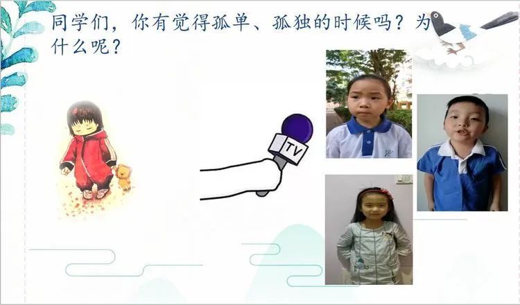 在劉老師的課堂上,她帶來《樹和喜鵲》故事中主人公小喜鵲日記本獎勵讀書流利、情感充沛的孩子們。通過小喜鵲的日記,婉儀老師將課堂成功地轉(zhuǎn)接到課文的文本當中。進而有對文章中出現(xiàn)的事物、事物所具備的特點展開了細致而有趣的學習。期間,婉儀老師還化身小記者,用三段對于自己學生的采訪視頻,讓學生對于“孤單”二字有了更加深刻的理解。