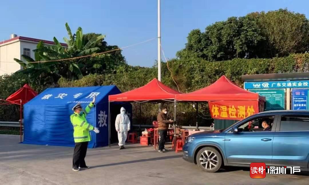 1月25日,深圳設置在全市市際公路入口處的49個入深車輛交通聯合檢疫點正式啟用,由深圳交警、派出所、衛生防疫等部門和基層街道人員組成的檢查小組,24小時全天候聯勤輪班值守,按照“逢車必檢、逢人必檢”要求,對所有入城車輛和司乘人員進行信息核查登記和體溫檢測,及時安置有發熱等癥狀的旅客,嚴守深圳城門第一關。