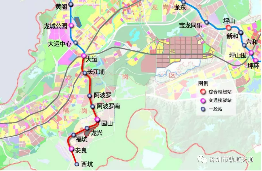 16號線二期工程自大運站至西坑站,線路長度9.53公里,為地下線,采用A型車6輛編組;建設工期5年。