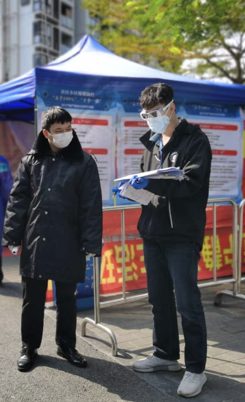 2月中旬,因防疫工作重心轉移,他帶著近一個月的防疫經驗,以一個新的形象投入到其他防疫崗位中,作為區排查防疫組的一員,繼續堅守在抗疫第一線,風雨無阻,負責起桃源街道12個社區92個小區的排查工作。在此過程中他挑起了更多的“擔子”,對小區外籍人員管控、快遞人員進出、測溫、以及化糞池排污口等重點部位的消殺情況等進行嚴格督導,同時對有疫情的小區送去口罩、酒精、測溫槍等防疫物資。3月5日在檢查龍輝社區過程中,他與社區三人小組成員以及10余名青年突擊隊 志愿者為愛集結,給轄區37戶空巢、孤寡老人、軍休二所退休軍干部送去牛奶、蔬菜等生活慰問品,用實際行動發揚雷鋒精神,踐行為國家、為社會、為家人勇往直前的使命。
