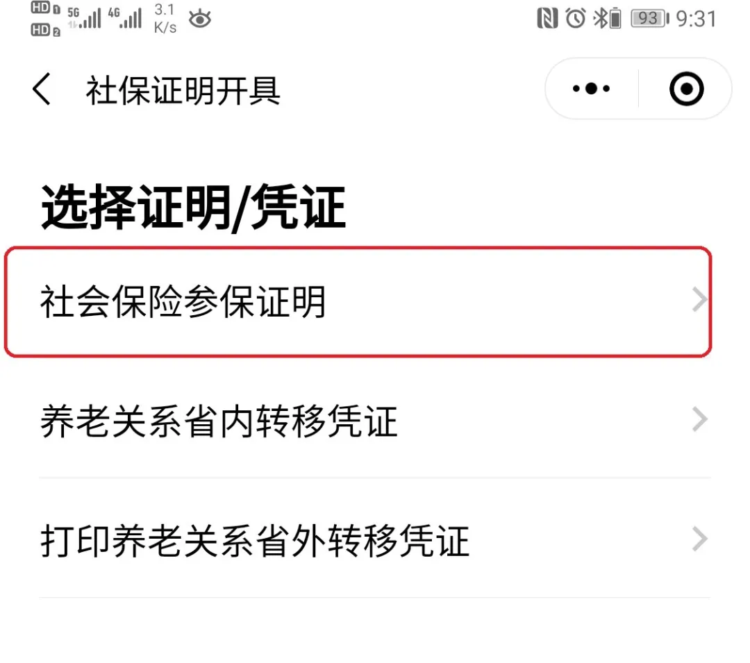 4、選擇“社會保險參保證明”。