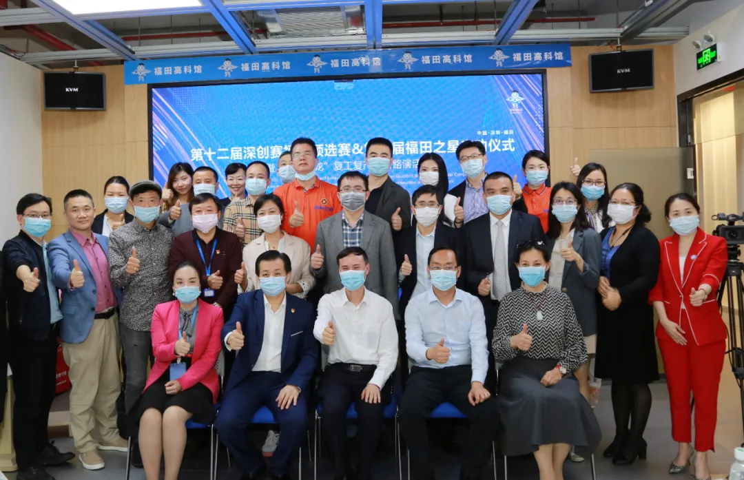 隨后,范坤與福田區科技創新局局長張忠暉等共同上臺啟動第十二屆深創賽福田預選賽暨第四屆“福田之星”大賽,同時為福田高科館授予“福田科技港灣”牌匾。