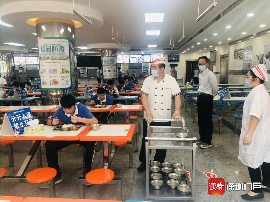 深圳特區報2020年4月27日訊 4月27日,深圳高三、初三學子返校。食堂是校園防控工作的重點,中午時分,學生就餐開始,實行錯峰就餐、分區就餐。有的學校將每張餐桌用有機玻璃隔板分隔用餐區域,有的學校在空間足夠的條件下實行單人單桌,按號就座。