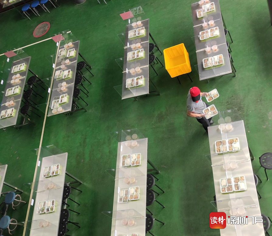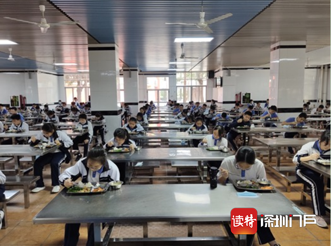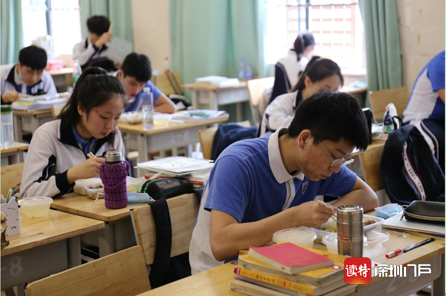 為保障疫情防控期間學生的用餐安全,羅湖高級中學采用“送餐制”,將午餐盒飯送餐到班,學生在餐前按七步法洗手后,依次在班級門口領餐后回到座位就餐。