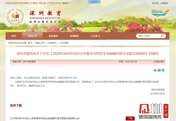 見圳客戶端·深圳新聞網2020年5月9日訊(見圳客戶端、深圳新聞網記者 張玲)2020年,深圳中小學招生政策發生重大改變。根據深圳市《關于做好2020年普通中小學招生入學工作的通知》的規定,民辦中小學校招生必須搖號。