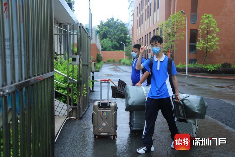 龍崗二職開學第一天,傾盆暴雨阻擋不住同學們開學的笑臉。校長、轄區民警、教師黨員志愿者早早在校門口迎接同學們回“家”。這是闊別三月的重逢,少年歸來依舊春風滿面。