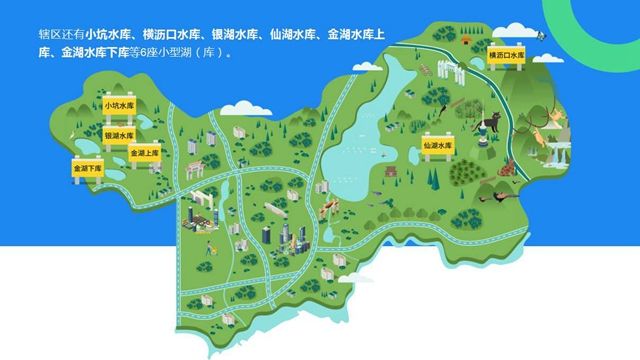 深圳水庫于1960年建成,設計水位為28.83m,水面面積4.06平方公里,水庫總庫容4577萬立方米,幾十年來水質達標率始終保持100%,持續為深港人民提供優質飲用水,被譽為深港兩地人民的“大水缸”。此外,轄區還有小坑水庫、橫瀝口水庫、銀湖水庫、仙湖水庫、金湖水庫上庫、金湖水庫下庫等6座小型湖(庫)。
