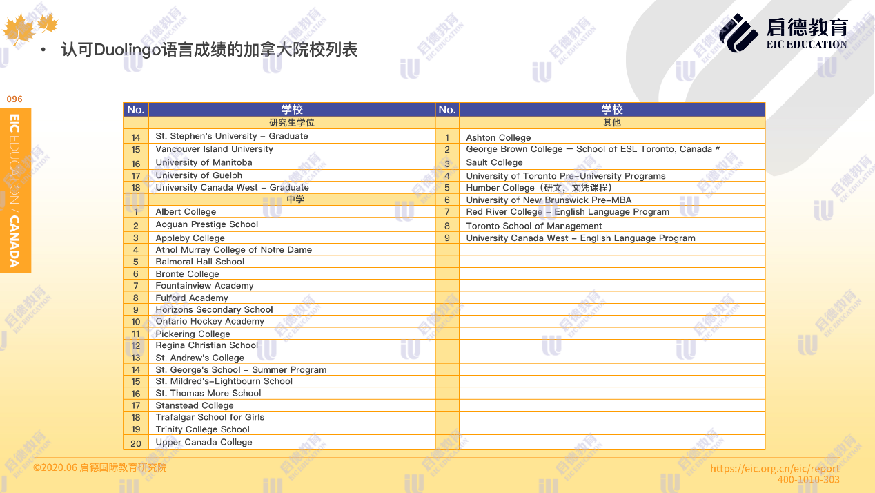 據了解,目前多鄰國 Duolingo English Test語言成績被加拿大高校的76個本科生學位、18個研究生學位,及20所中學所認可。此外,加拿大學術英語測試 CAEL考試已于2019年1月在中國內地開放考試,具有出分快(8天),聽說讀寫一次性完成,無須額外口語面試等特點,目前北上廣均設有考場。