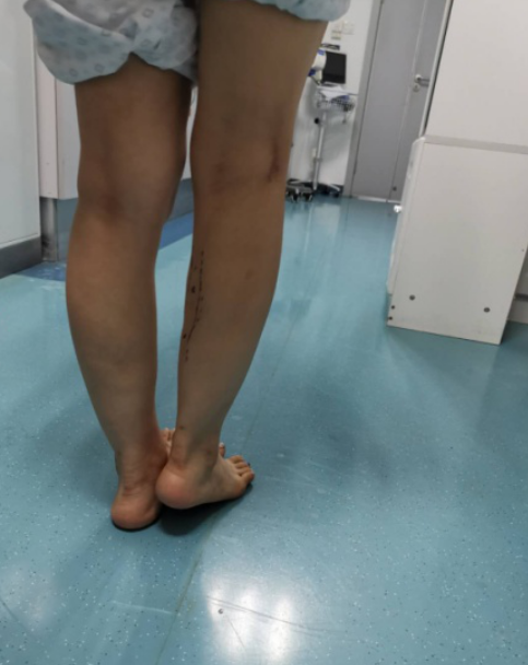 見圳客戶端·深圳新聞網2020年6月16日訊(見圳客戶端、深圳新聞網記者 劉夢婷 通訊員 彭蓓、李夢園/文 運動醫學與康復醫學中心/圖)20歲出頭的深圳姑娘楊柳(化名)是個愛美的女孩,為了令小腿看起來更加緊致美觀,大約一年前她去一家機構做了雙側小腿的抽脂和肉毒素注射,花費了一萬多元。卻沒料到,數月之后,她的右側小腿肌肉越來越緊繃,到了2020年3月,右側小腿已經無法站直,雙腿并立時右腳腳跟無法著地,而且右小腿看起來比左小腿短一截,走起路來也一腳高、一腳低,成了跛行。