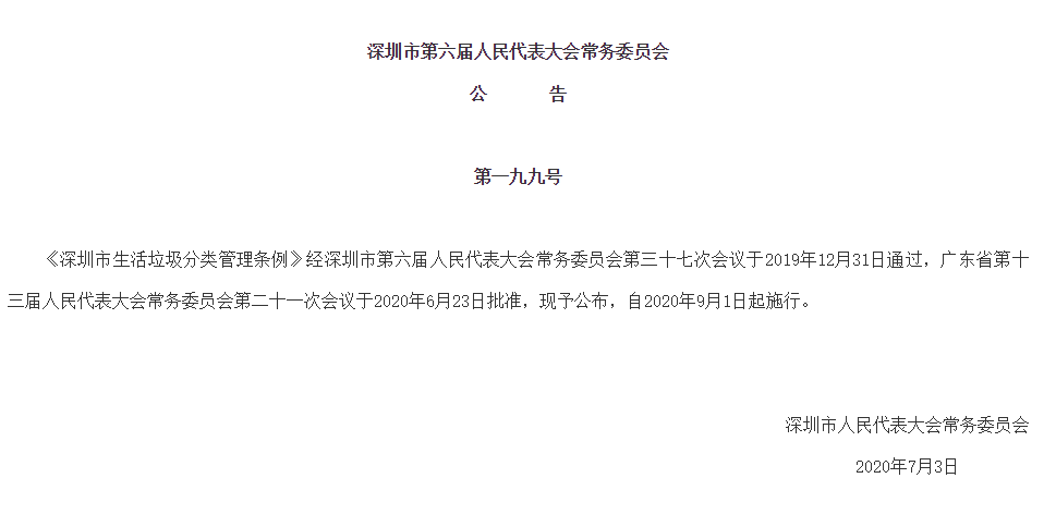 見圳客戶端·深圳新聞網2020年7月4日訊(見圳客戶端、深圳新聞網記者 葉梅)記者從深圳市人大常委會官方網站獲悉,《深圳市生活垃圾分類管理條例》(以下簡稱《條例》)經深圳市第六屆人民代表大會常務委員會第三十七次會議于2019年12月31日通過,廣東省第十三屆人民代表大會常務委員會第二十一次會議于2020年6月23日批準,將于2020年9月1日起施行,從垃圾分類投放、收集運輸處理、源頭減量和循環(huán)利用等方面提出了明確要求。