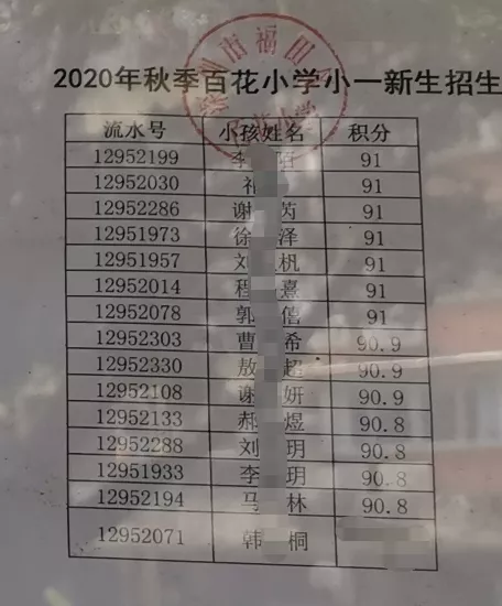 2020年福田區公辦小一新生錄取名單來了,部分學校最低錄取積分曝光