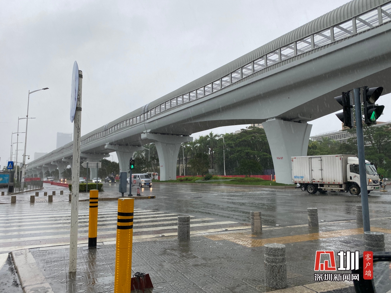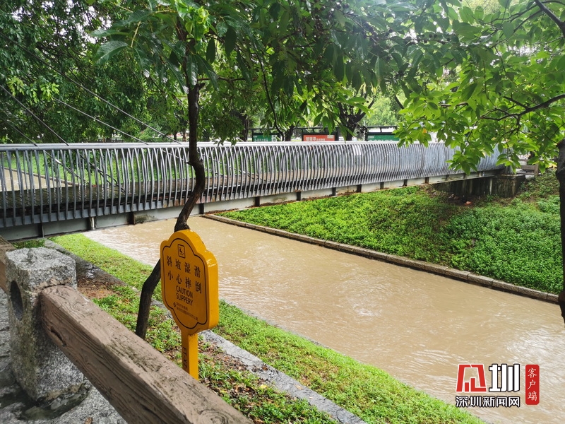 見圳客戶端·深圳新聞網2020年8月5日訊 據深圳市氣象臺,珠江口強回波向東北方向移動,自西向東影響我市,雨量20-40毫米,伴有7級左右陣風,目前全市暴雨黃色和雷電預警信號生效中。圖為寶安區茅洲河燕羅段烏云籠罩、風大雨急。(記者王曉婧 攝 )